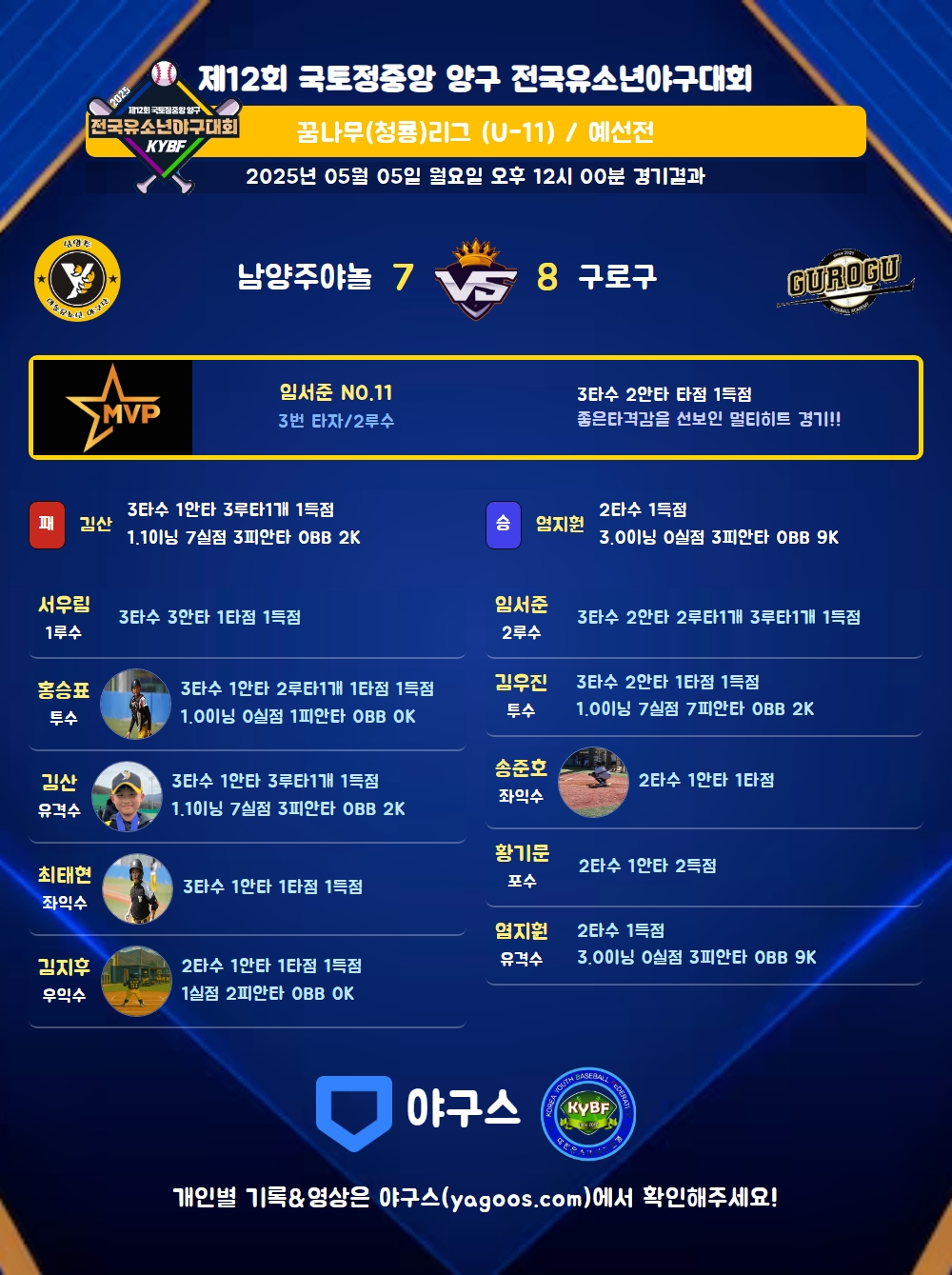 | 3루타 | 김산(8) 임서준(11) |