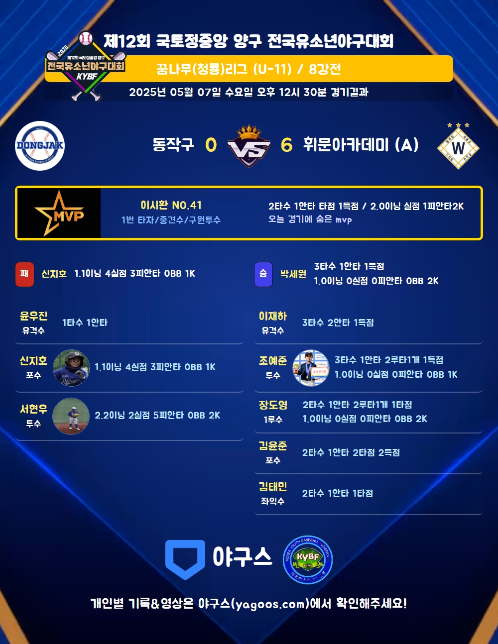 | 5 | 투 | 조예준(8) | 중월2 | 1땅 | - | 낫아웃삼진 | - | 3 | 1 | - | 1 | - | 1 | - | 1 | 0.333 |
