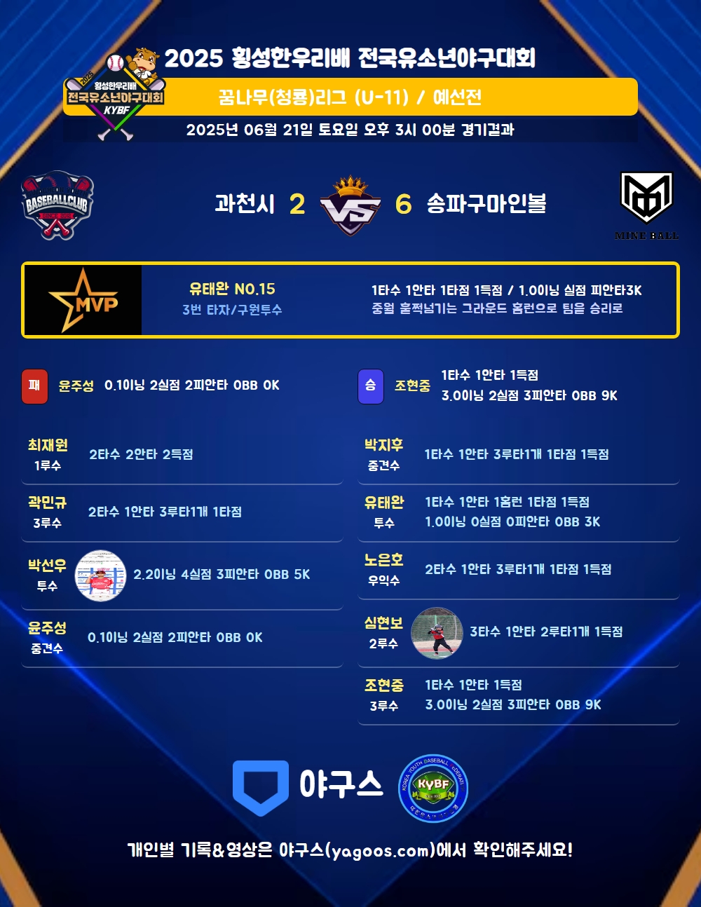 | 3루타 | 곽민규(77) 박지후(900) 노은호(37) |
