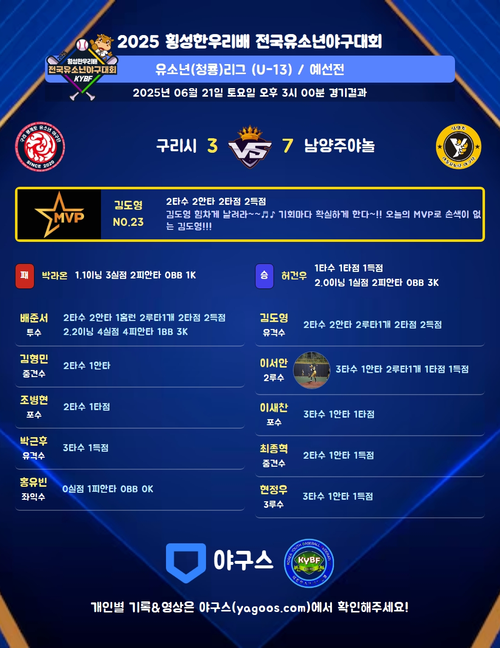 | 3 | 一 | 황현민(82) | 3실(1타점) | 투땅출 | - | 4구 | - | - | 2 | 0 | 1 | 1 | - | 1 | 1 | - | 0.000 |