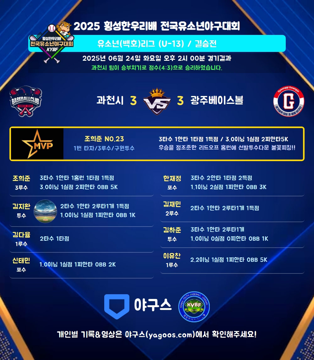| 2루타 | 김지환(1) 김하준(25) 김재민(16) |