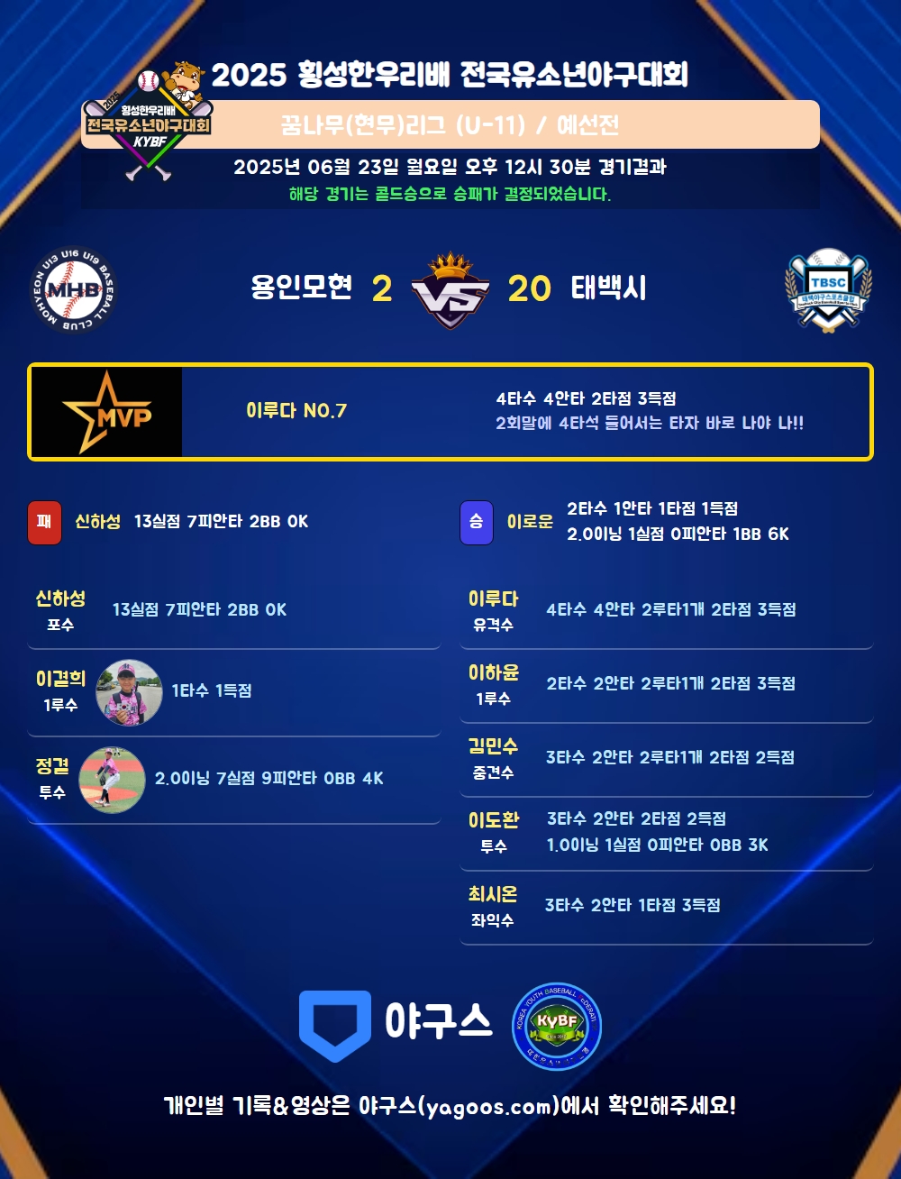 | 2루타 | 이루다(7) 이하윤(99) 김민수(2) 정찬민(52) |