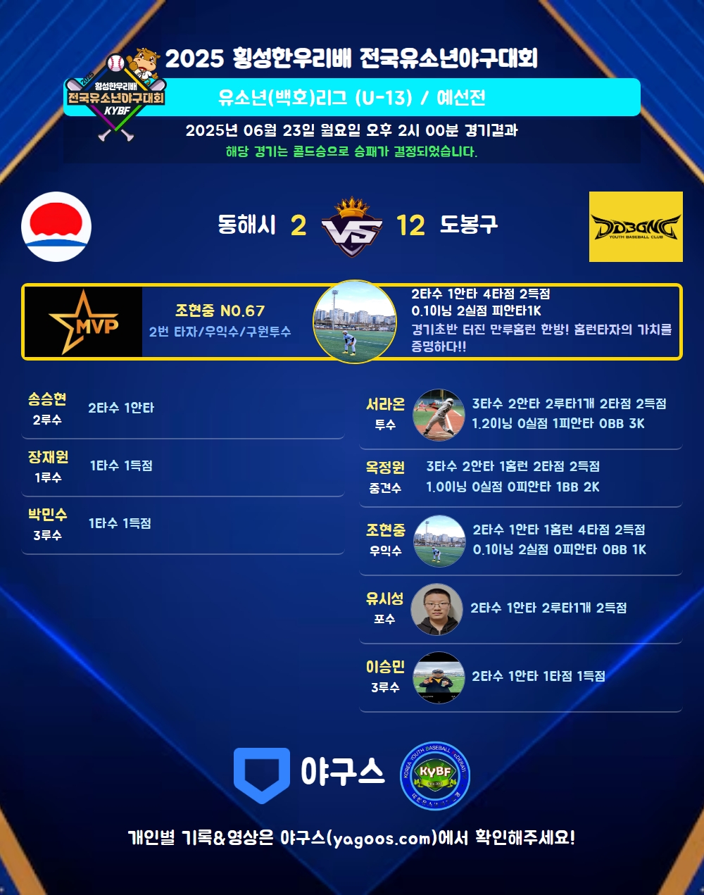 | 2 | 포 | 엄수현(3) | 1땅 | 유땅병살 | - | - | - | 2 | 0 | - | - | - | - | - | - | 0.000 |
