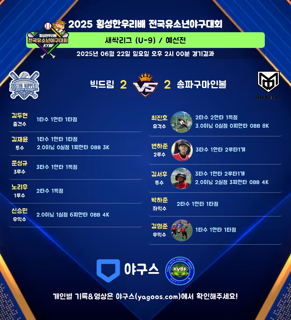 | 4 | 투 | 김서후(17) | 2땅 | - | 중전2 | 2땅출 | - | 3 | 1 | - | - | - | - | - | - | 0.333 |