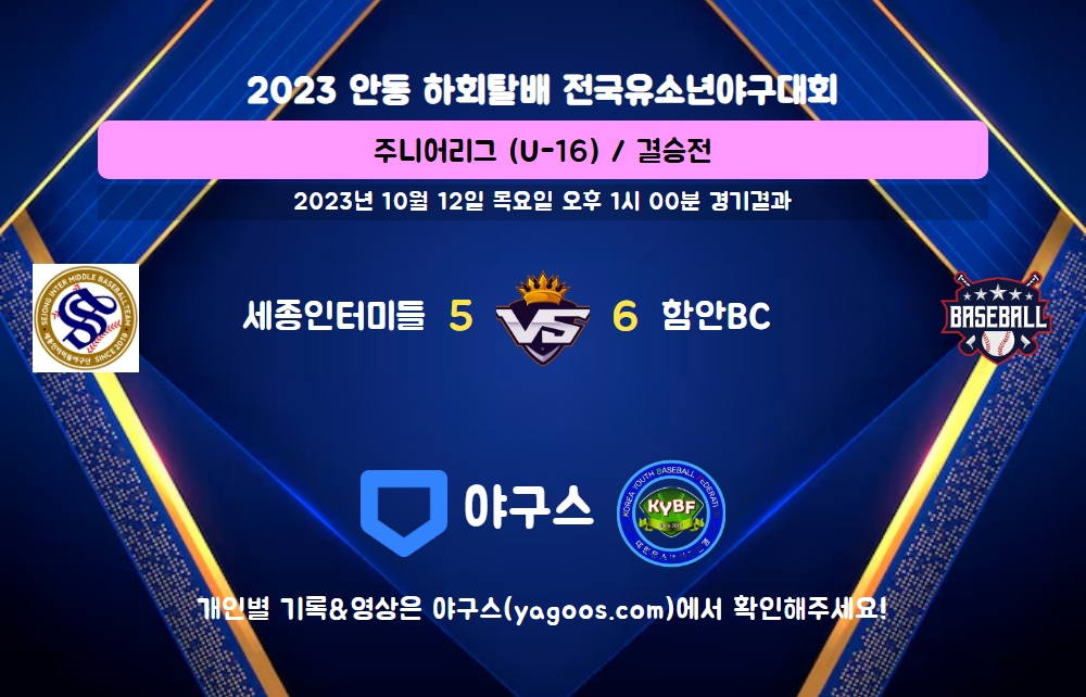 | 팀명 | 1회 | 2회 | 3회 | 4회 | 5회 | 6회 | R | H | E | B | L |