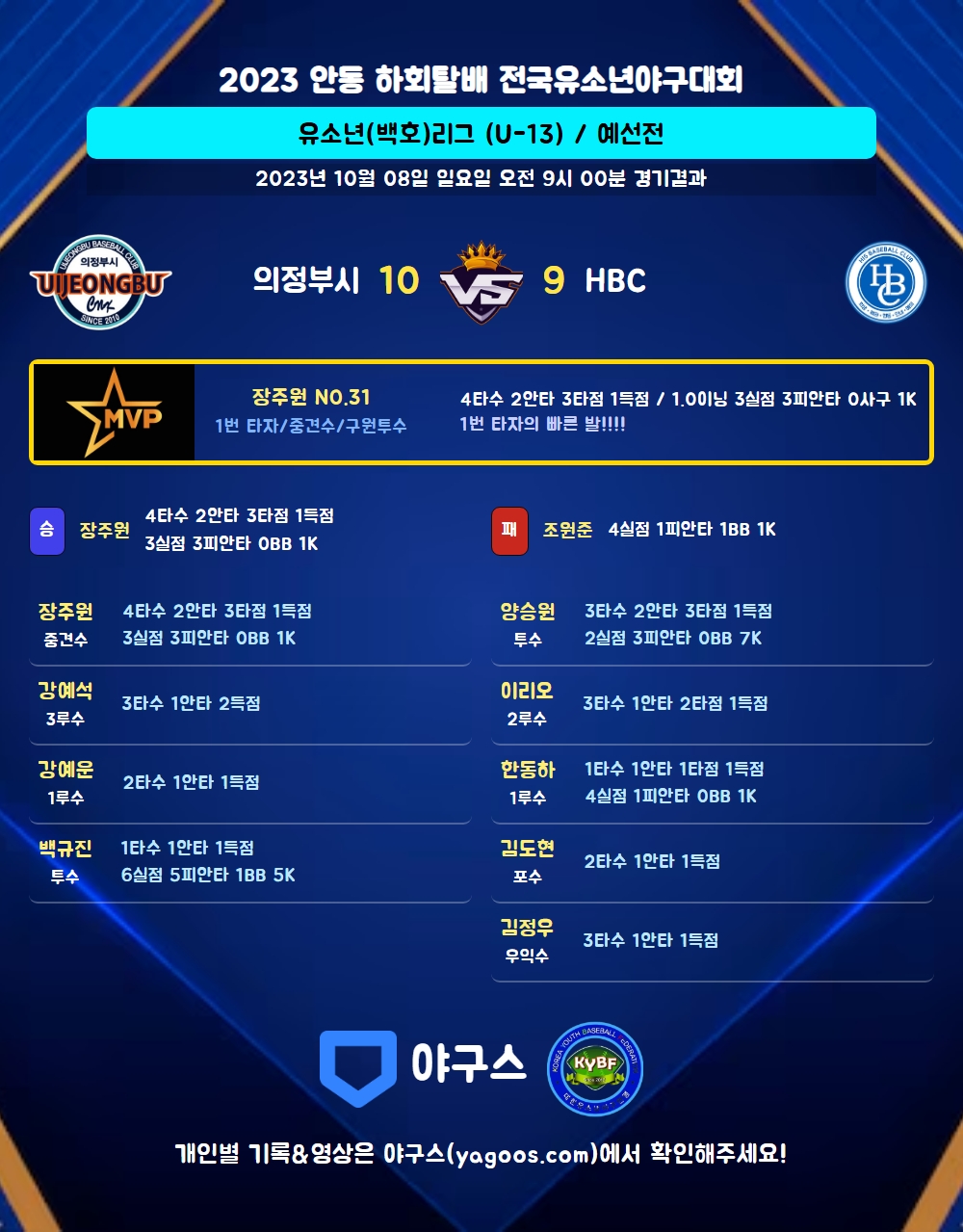 | 9 | 유 | 박민교(10) | - | 우전3 | - | 우플 | - | 2 | 1 | 0 | 1 | 0 | 0 | - | 0 | 0.500 |