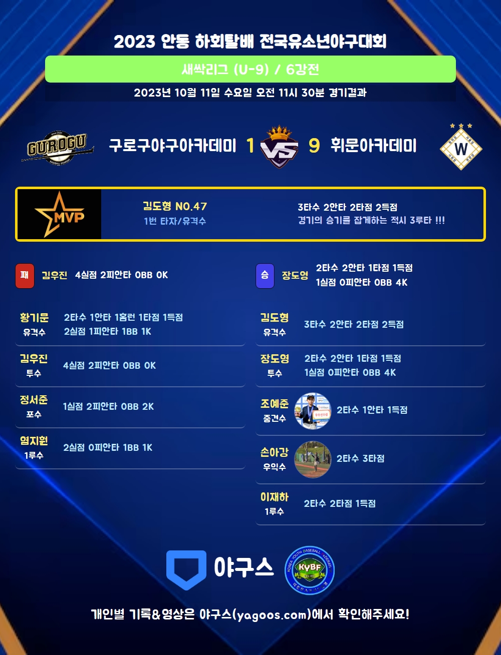 | 휘문아카데미 | 6 | 0 | 3 | 0 | 9 | 5 | 0 | 7 |