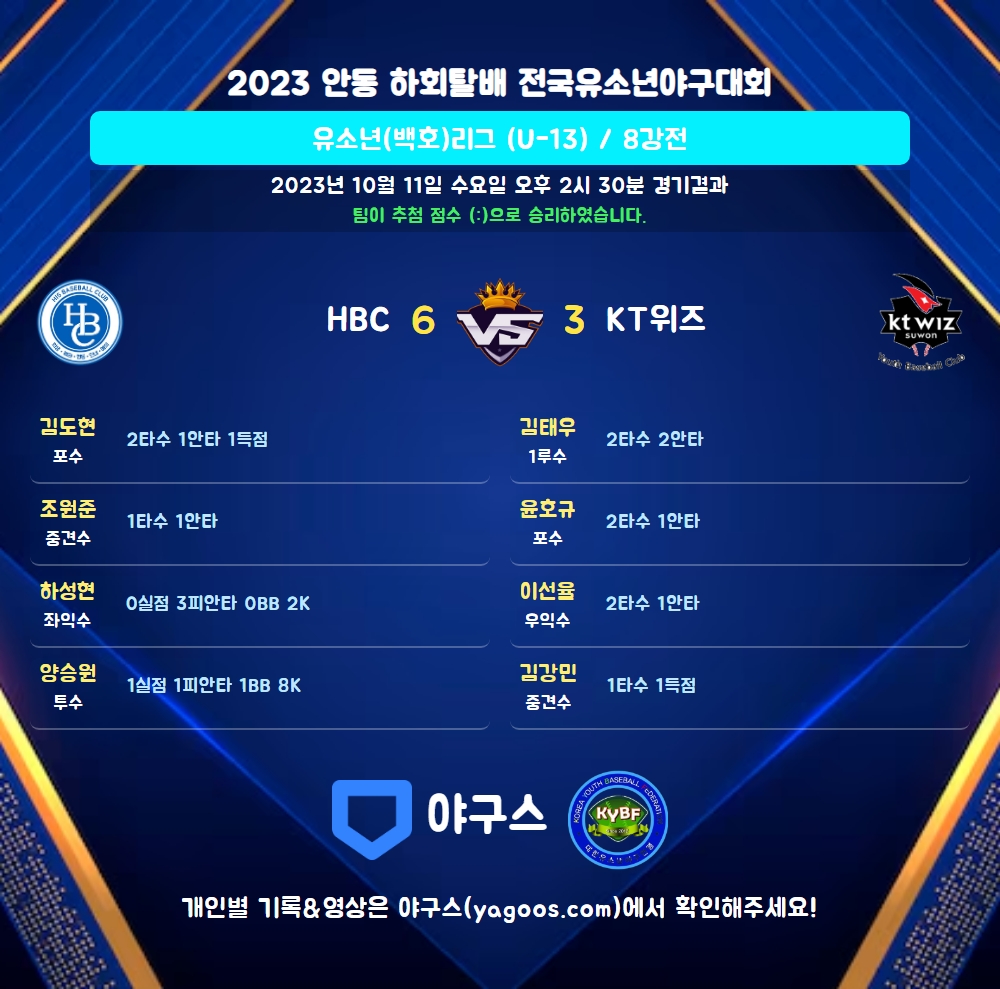 | 팀명 | 1회 | 2회 | 3회 | 4회 | 5회 | R | H | E | B | L |
