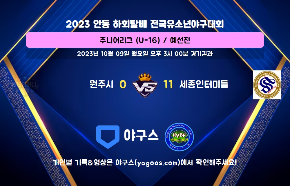 | 팀명 | 1회 | 2회 | 3회 | 4회 | 5회 | 6회 | R | H | E | B | L |