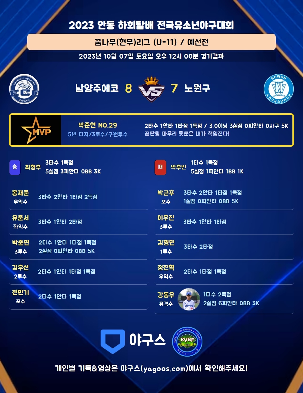 | 1 | 박우빈(18) | 패 | - | 5 | 1 | 1 | 0 | 3 | 1 | 19 | 5 | 5 | 0 |