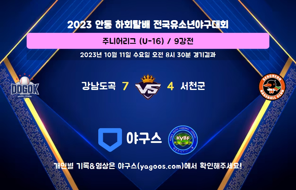 | 팀명 | 1회 | 2회 | 3회 | 4회 | 5회 | 6회 | R | H | E | B | L |