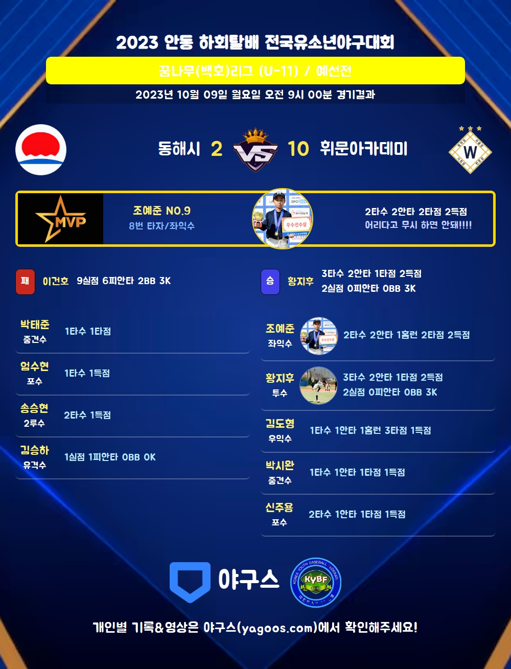 | 휘문아카데미 | 8 | 0 | 1 | 1 | 10 | 9 | 2 | 5 |