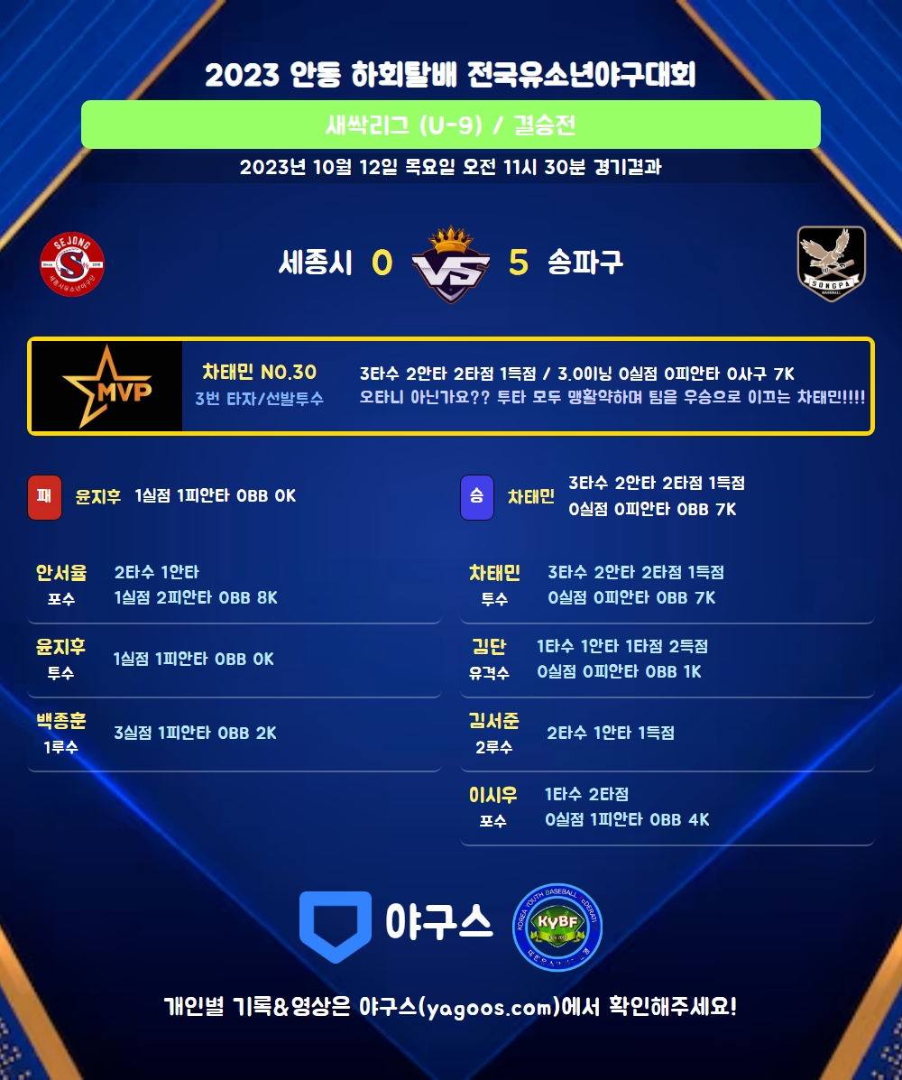 | 1 | 윤지후(7) | 패 | - | 3 | 1 | 1 | 0 | 2 | 0 | 12 | 1 | 1 | 0 |