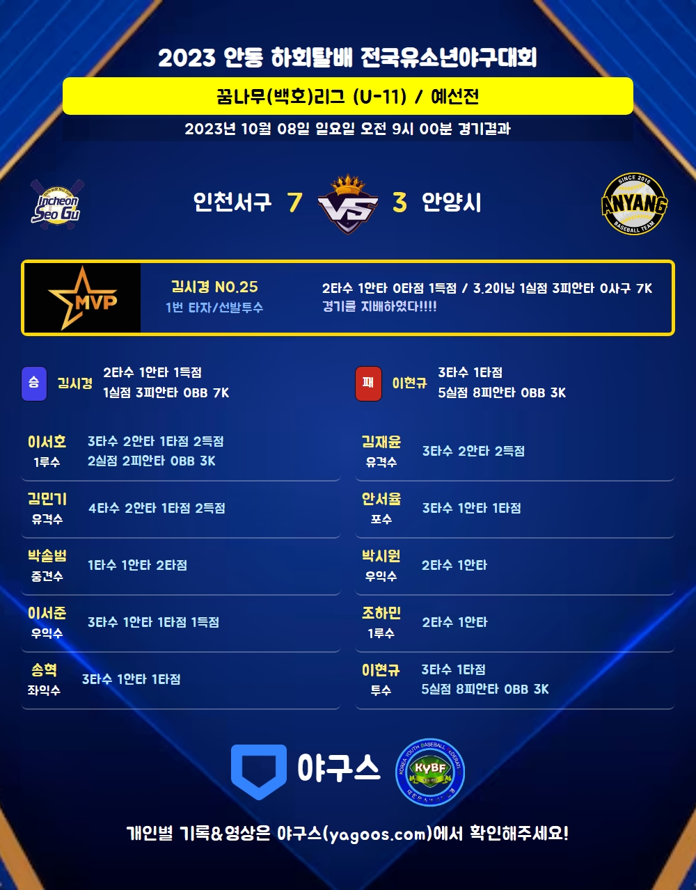 | 6 | 우 | 이서준(26) | 좌중2 | 유땅 | - | 1플 | - | - | 3 | 1 | 1 | 1 | 0 | 0 | - | 0 | 0.333 |