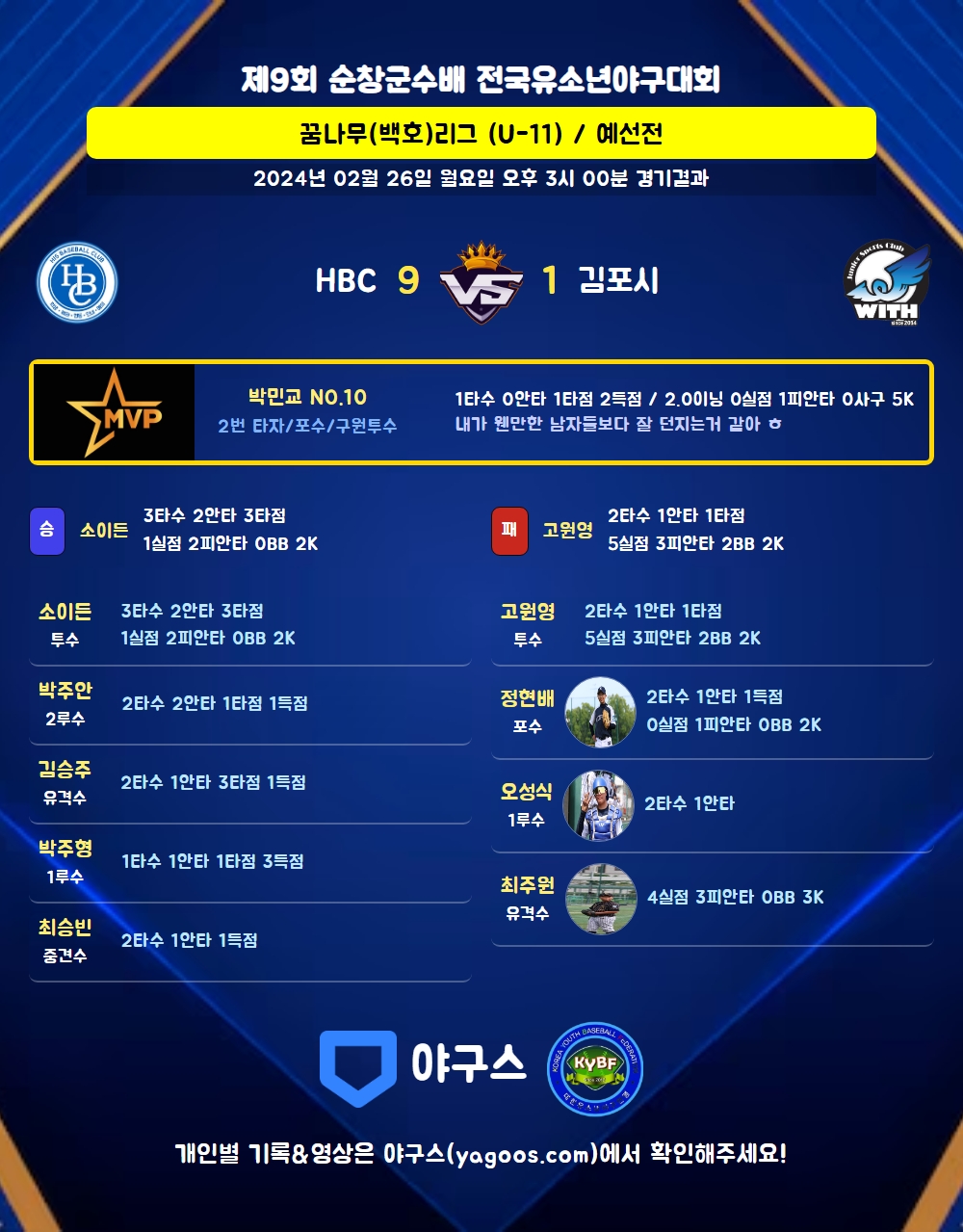 | 2 | 포 | 박민교(10) | 유땅 | - | 4구 | 4구 | - | 1 | 0 | 1 | 2 | 0 | 1 | 2 | 0 | 0.000 |