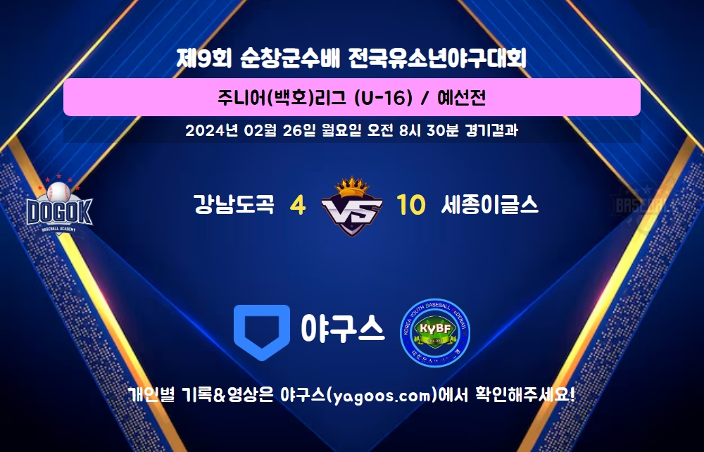 | 팀명 | 1회 | 2회 | 3회 | 4회 | 5회 | 6회 | R | H | E | B | L |