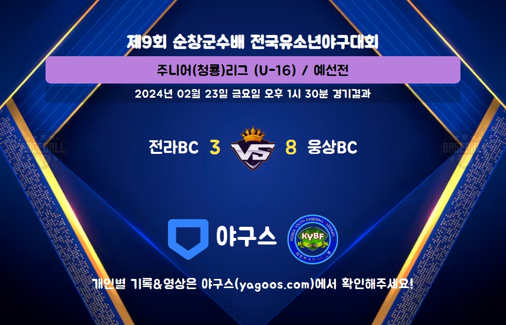 | 팀명 | 1회 | 2회 | 3회 | 4회 | 5회 | 6회 | R | H | E | B | L |