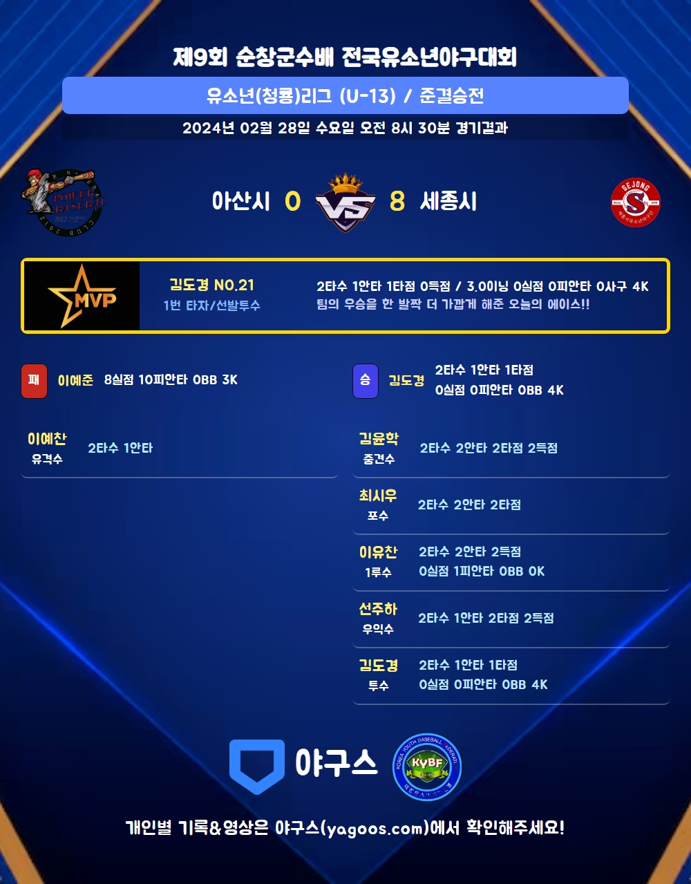 | 1 | 이예준(9) | 패 | - | 18 | 10 | 10 | 0 | - | 3 | 59 | 8 | 8 | 0 |