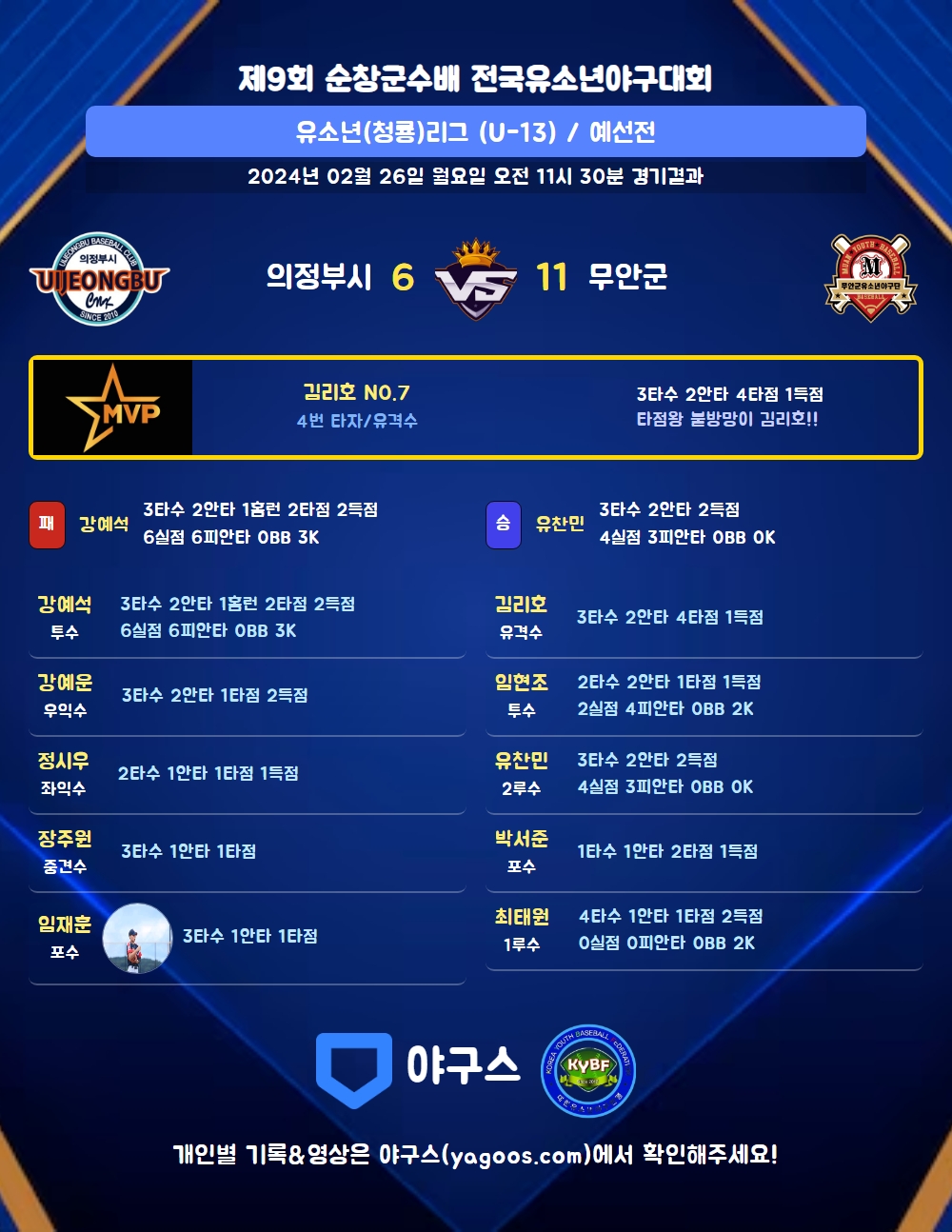 | 2 | 二 | 유찬민(9) | 2땅 | - | 우전안,유내안 | - | - | 3 | 2 | 0 | 2 | 0 | 0 | - | 0 | 0.667 |