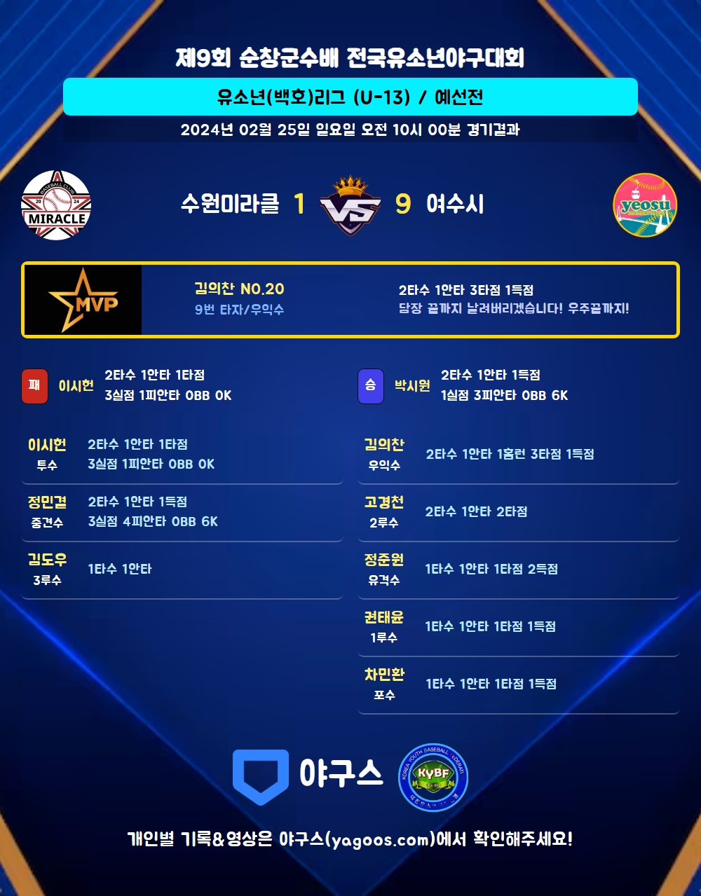 | 홈런 | 김의찬(20) |