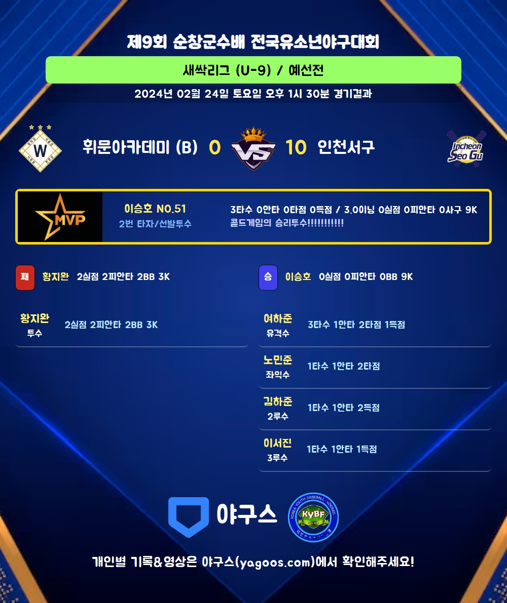 | 1 | 이승호(51) | 승 | - | 9 | 0 | 0 | 0 | - | 9 | 39 | 0 | 0 | 0 |