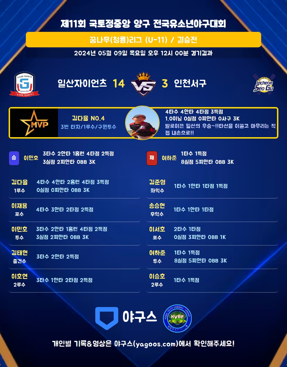 발로이끈 일산의 우승~!!타선을 이끌고 마무리는 직접 내손으로!!