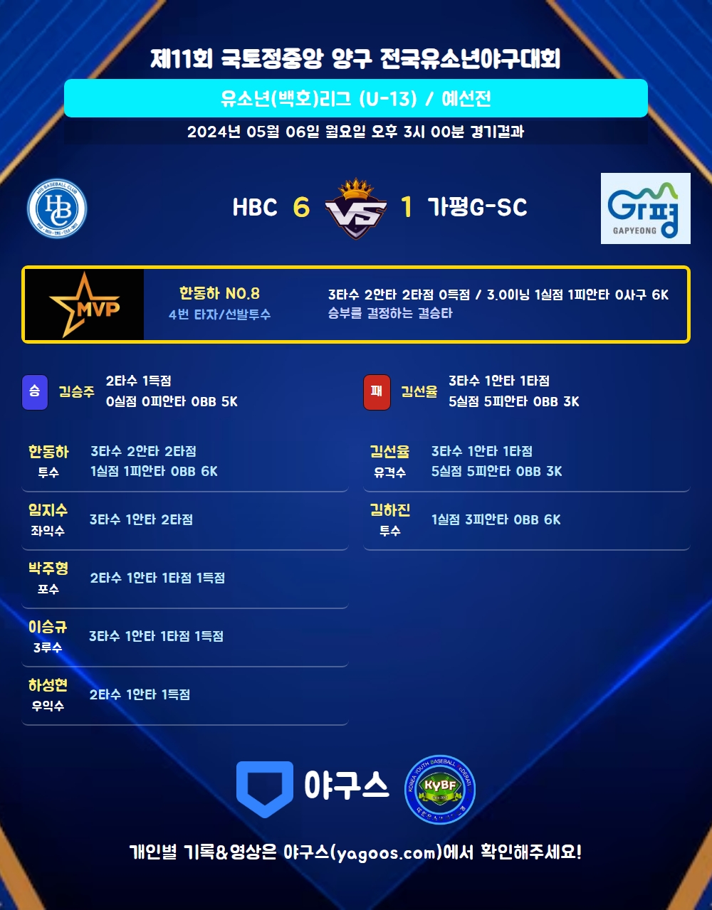 | 2 | 우 | 하성현(3) | 투땅 | - | 우중안 | - | 4구 | 2 | 1 | 0 | 1 | 0 | 3 | 1 | 0 | 0.500 |