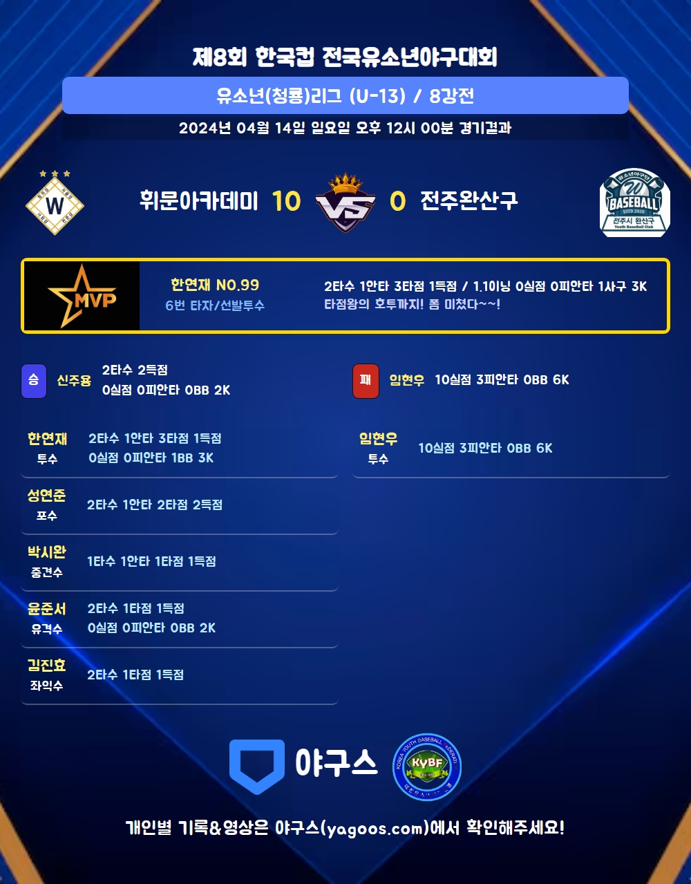 | 휘문아카데미 | 7 | 3 | 0 | 10 | 3 | 0 | 3 | |