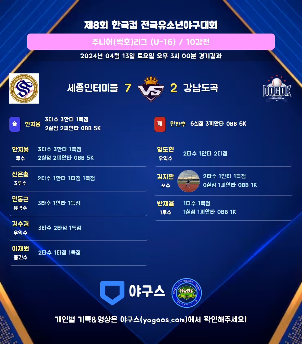 | 3 | 포 | 김지환(21) | 우전안 | - | 유플 | - | 2 | 1 | 0 | 1 | 0 | 0 | - | 0 | 0.500 |