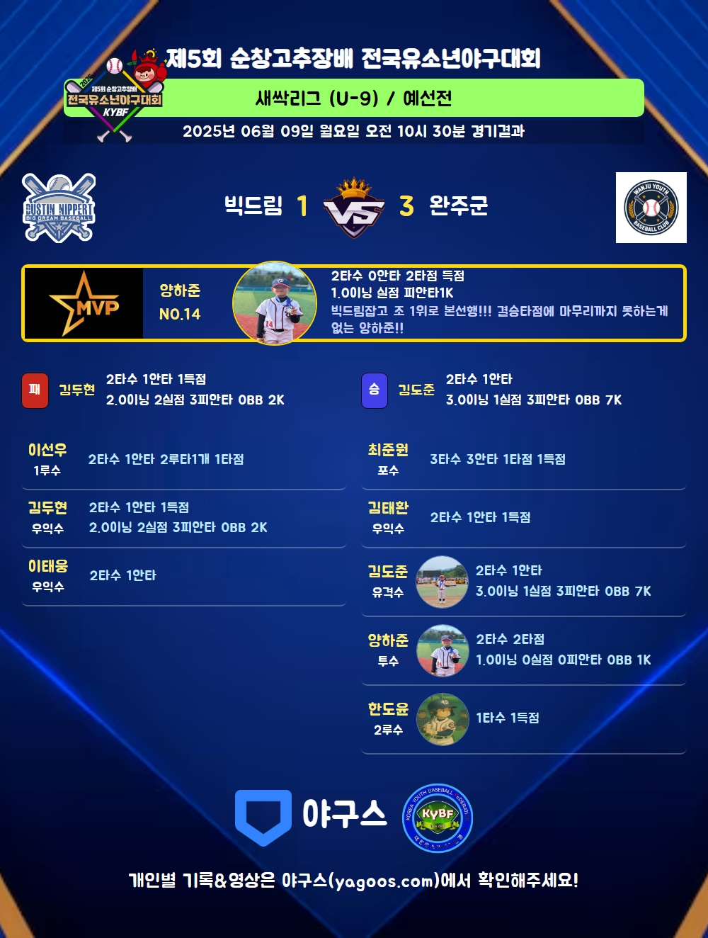 빅드림잡고 조 1위로 본선행!!! 결승타점에 마무리까지 못하는게 없는 양하준!!