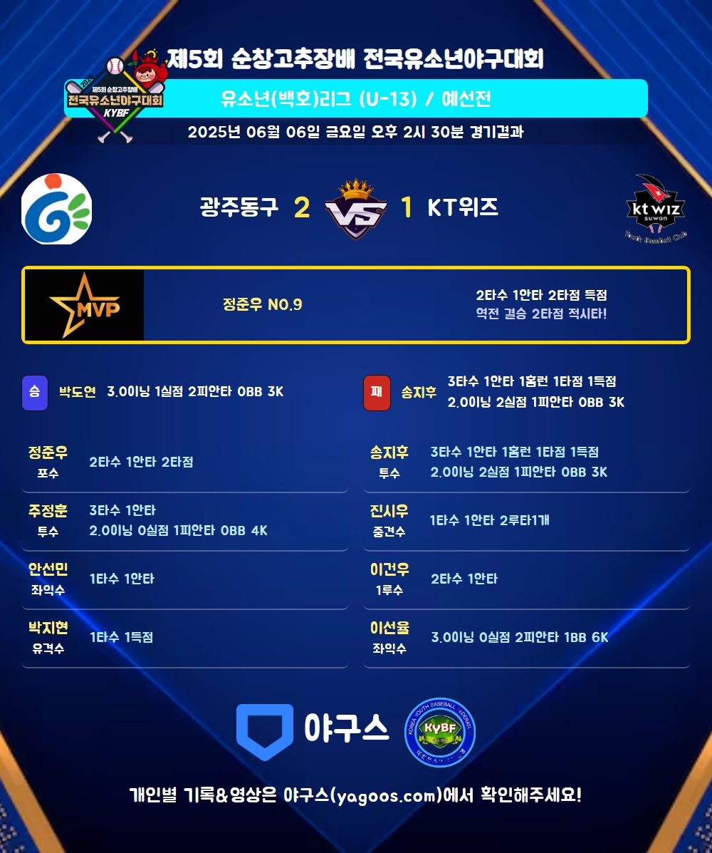 | 2 | 송지후(46) | 패 | 2.0 | 9 | 7 | 1 | - | 2 | 3 | 42 | 2 | 2 | 9.00 |