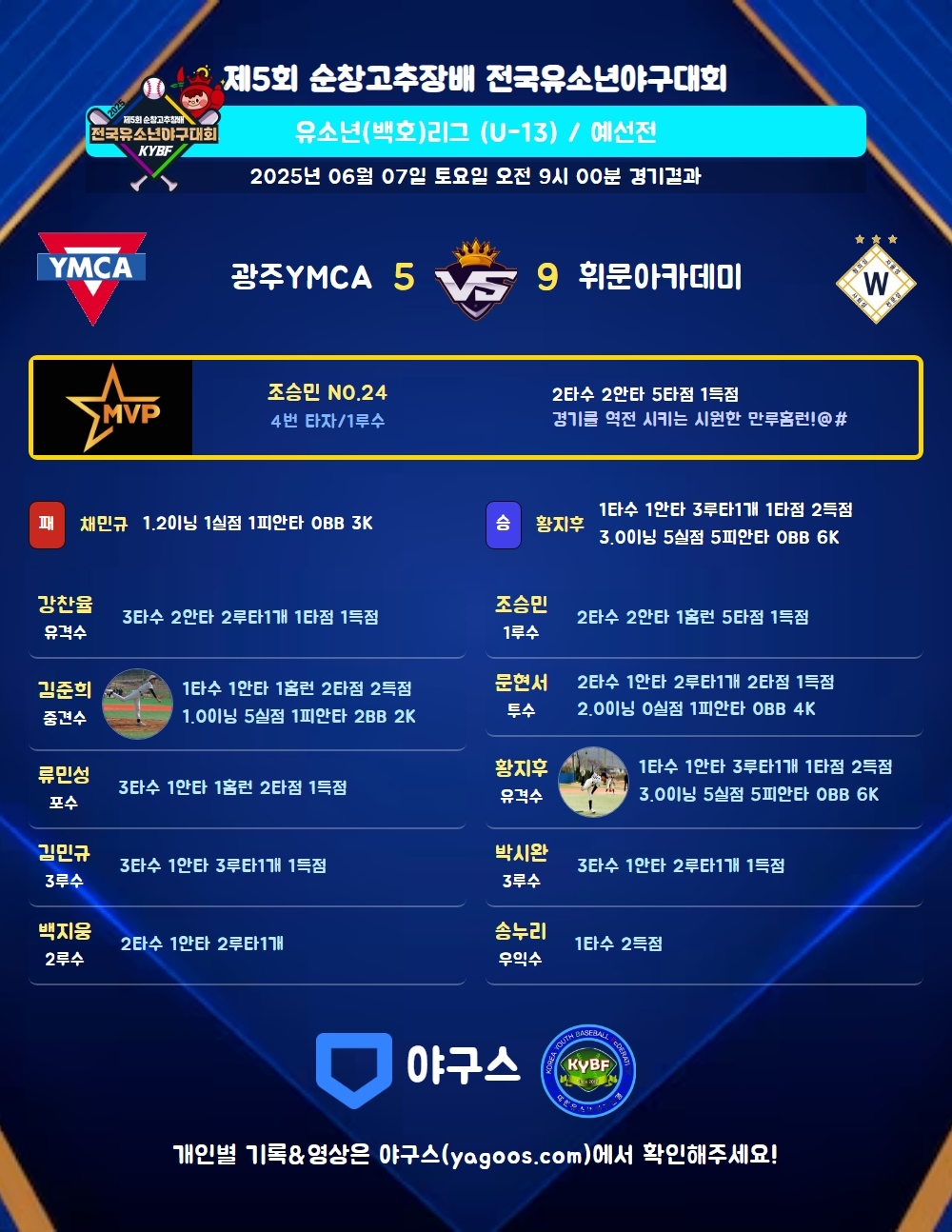 | 홈런 | 김준희(9) 류민성(39) 조승민(24) |