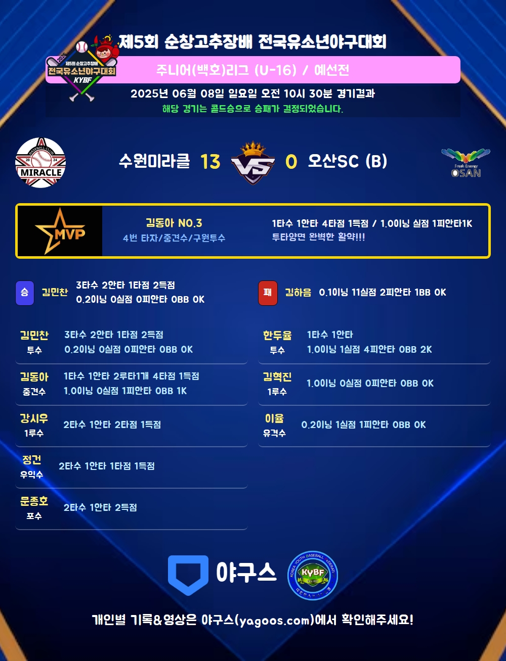 해당 경기는 콜드승으로 승패가 결정되었습니다.