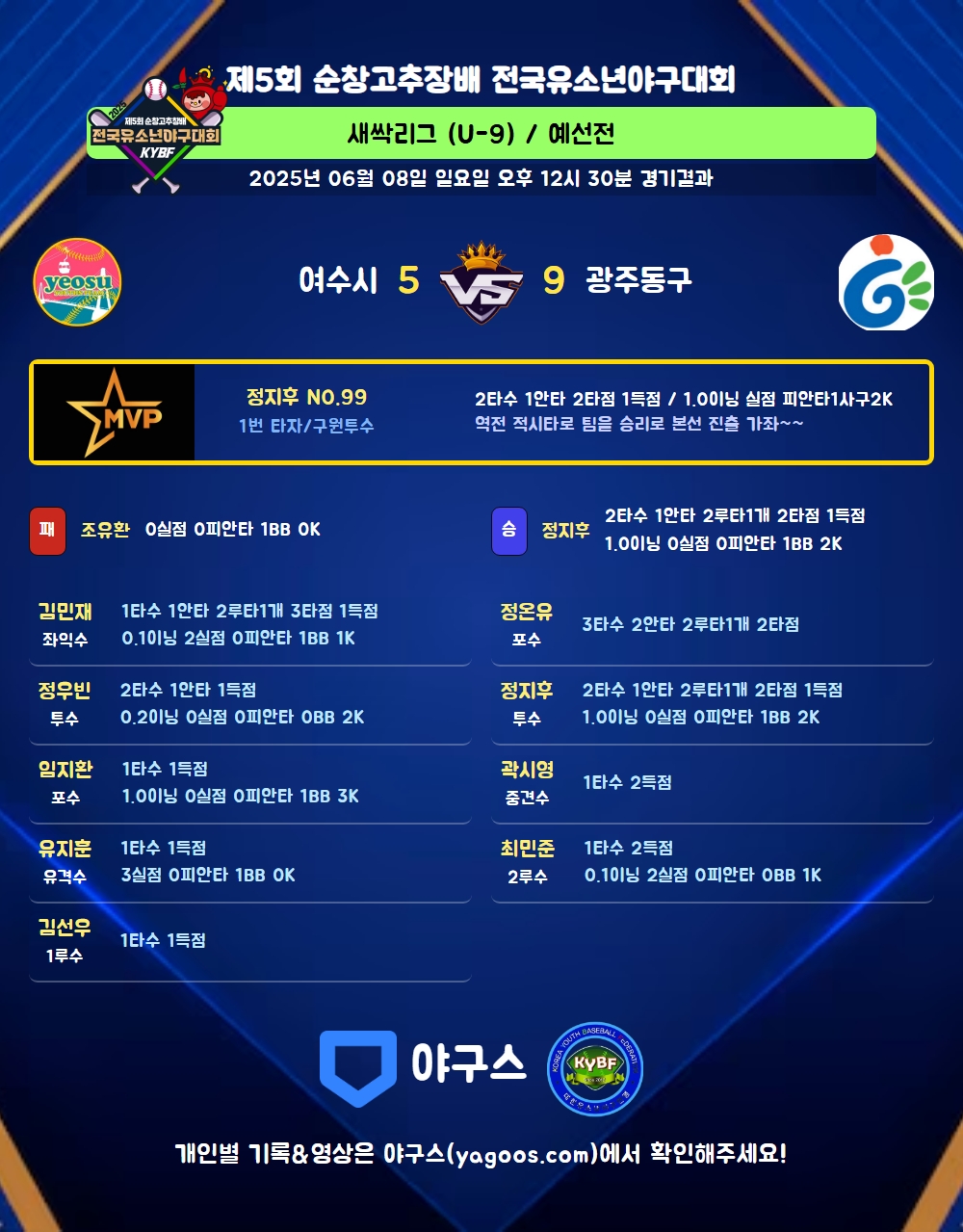 | 3 | 정지후(99) | 승 | 1.0 | 6 | 3 | - | - | 3 | 2 | 28 | - | - | 0 |