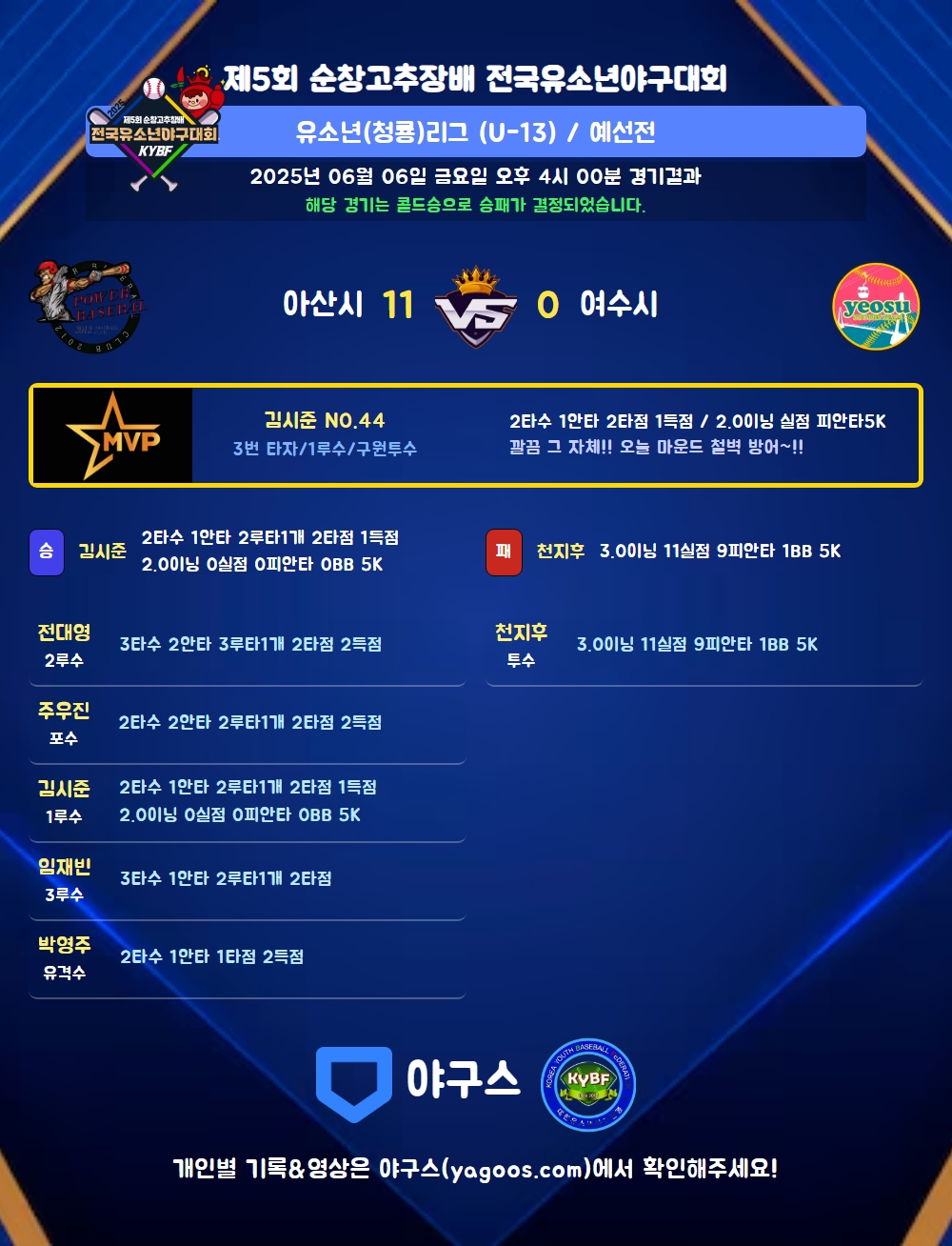 해당 경기는 콜드승으로 승패가 결정되었습니다.