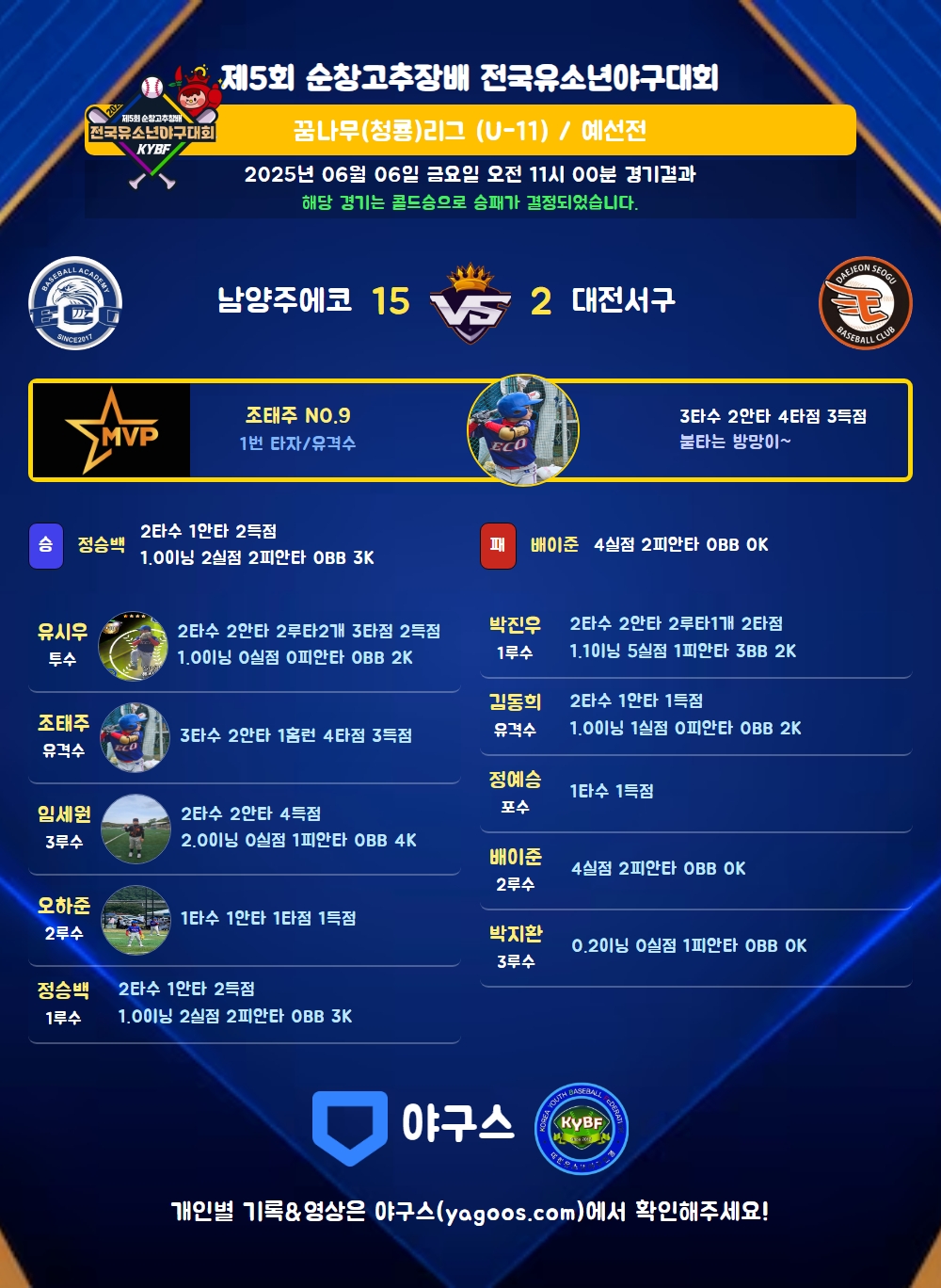 해당 경기는 콜드승으로 승패가 결정되었습니다.