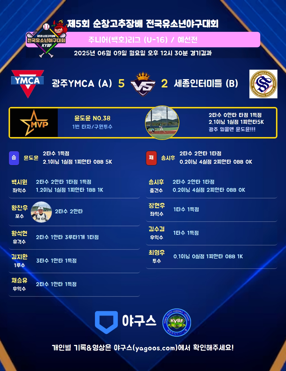 | 광주YMCA (A) | 0 | 1 | 0 | 4 | 0 | 0 | 0 | 5 | 7 | 0 | 5 | 7 |