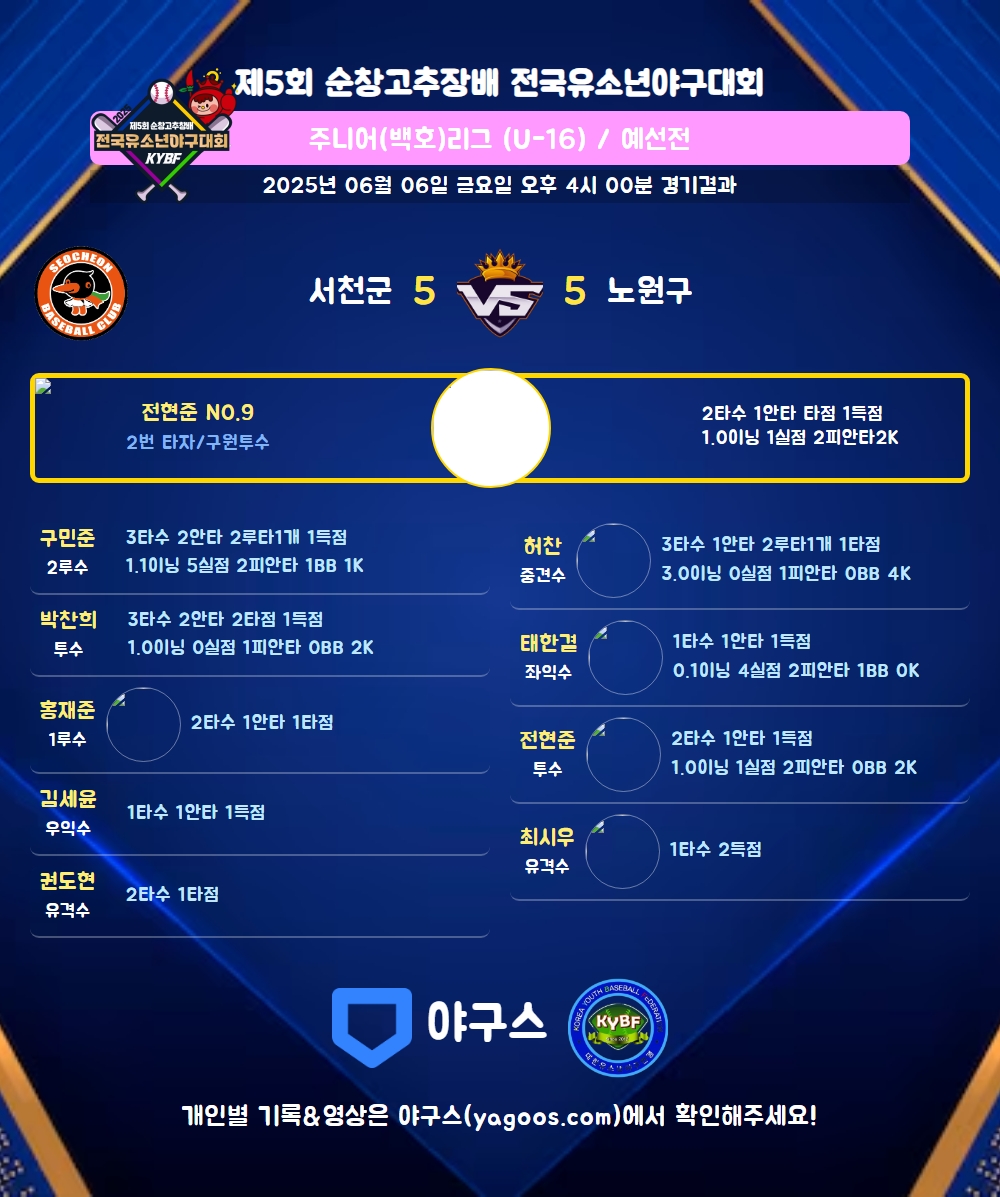 | 2 | 투 | 전현준(9) | 좌안 | 4구 | - | 유땅 | - | - | - | 2 | 1 | - | 1 | - | 2 | 1 | - | 0.500 |