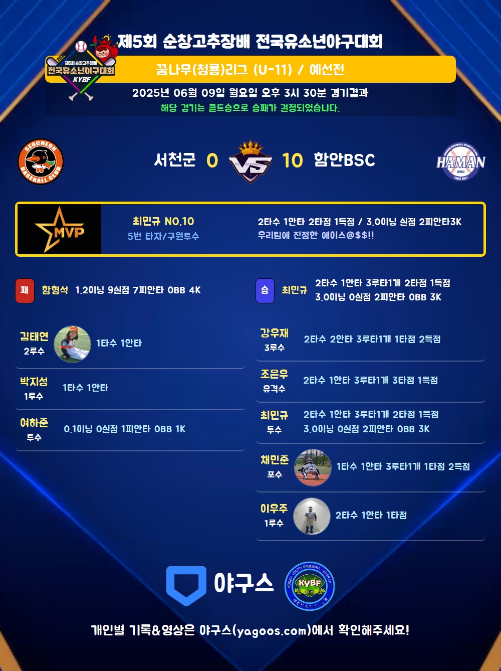 | 3루타 | 조은우(34) 강우재(48) 채민준(31) 최민규(10) |