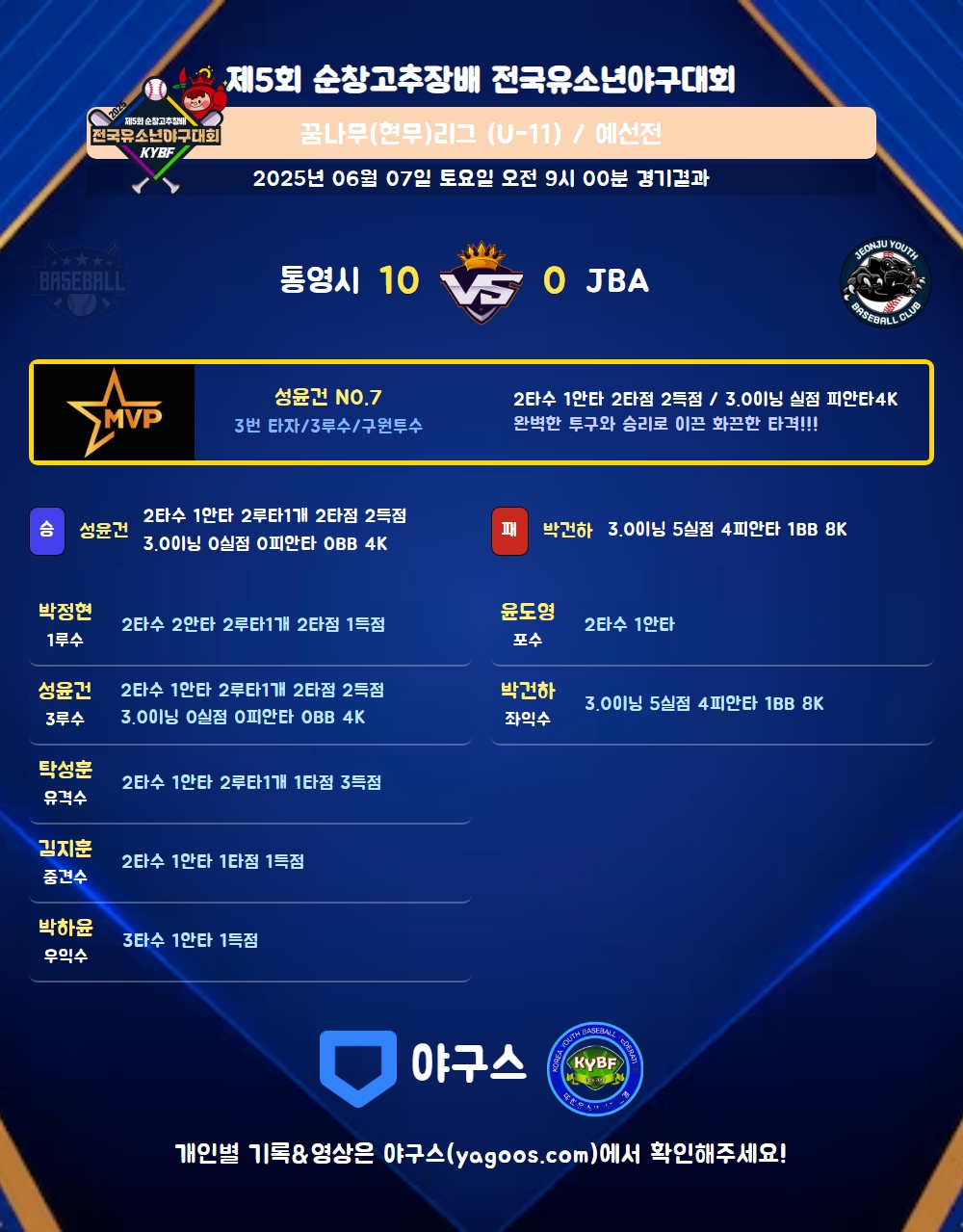 | 1 | 성윤건(7) | 승 | 3.0 | 11 | 7 | - | - | 4 | 4 | 52 | - | - | 0 |
