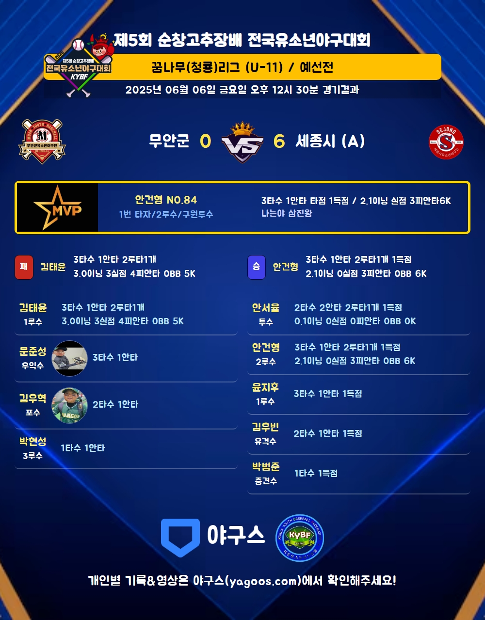 | 2루타 | 김태윤(5) 안건형(84) 안서율(52) |