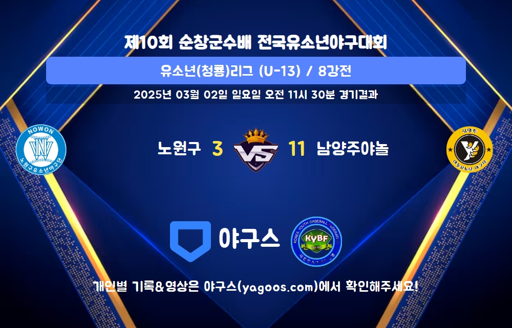| 팀명 | 1회 | 2회 | 3회 | 4회 | 5회 | 6회 | R | H | E | B | L |