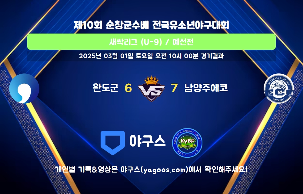 | 팀명 | 1회 | 2회 | 3회 | 4회 | 5회 | R | H | E | B | L |