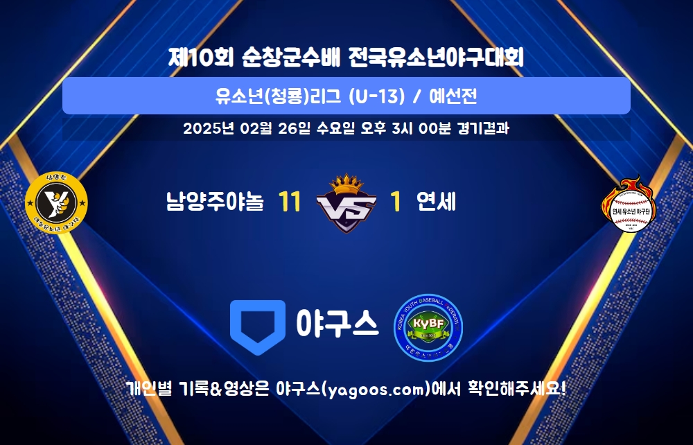 | 팀명 | 1회 | 2회 | 3회 | 4회 | 5회 | 6회 | R | H | E | B | L |