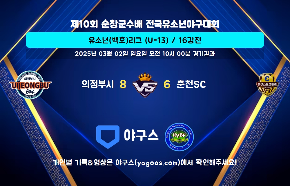 | 팀명 | 1회 | 2회 | 3회 | 4회 | 5회 | 6회 | R | H | E | B | L |