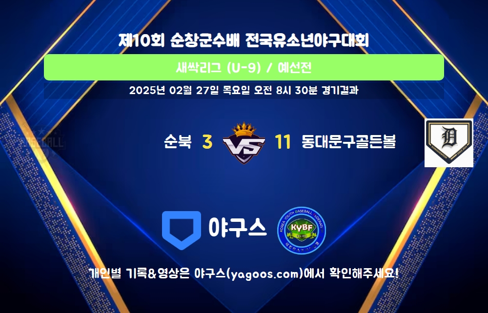 | 팀명 | 1회 | 2회 | 3회 | 4회 | 5회 | R | H | E | B | L |