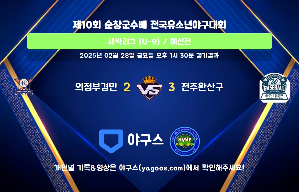 | 팀명 | 1회 | 2회 | 3회 | 4회 | 5회 | R | H | E | B | L |