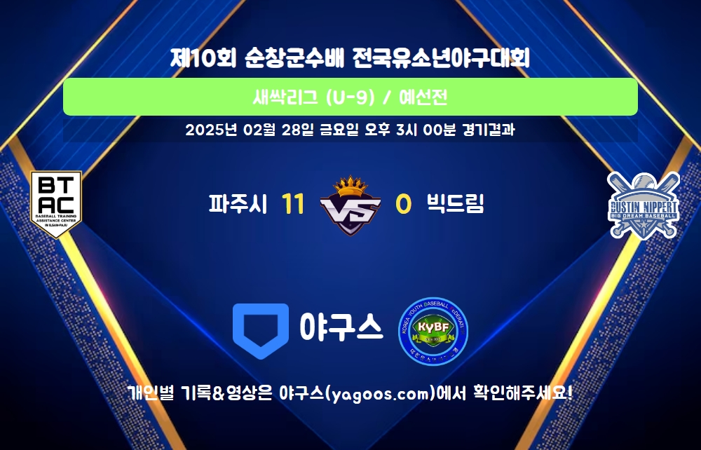 | 팀명 | 1회 | 2회 | 3회 | 4회 | 5회 | R | H | E | B | L |