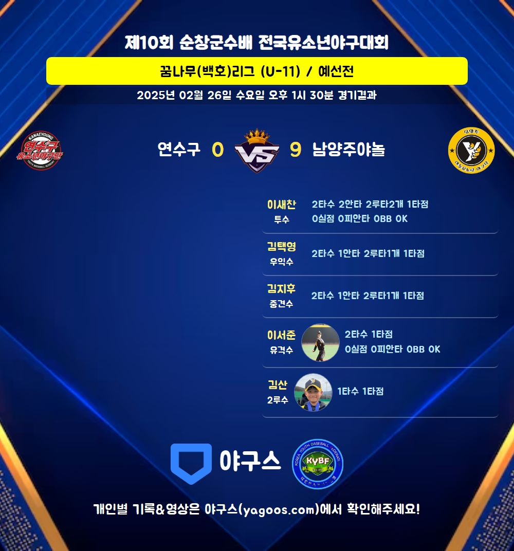 | 2루타 | 이새찬(47) 김택영(17) 김지후(51) |