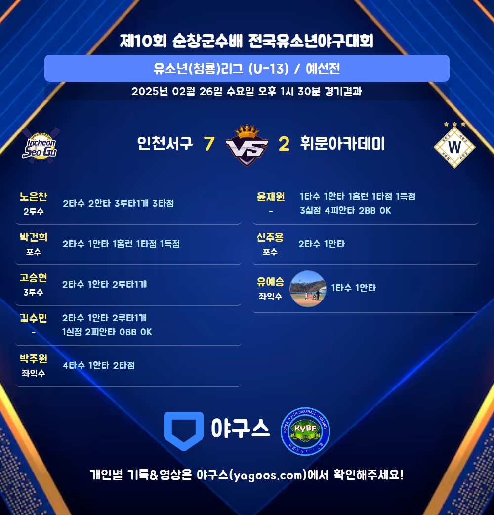| 3 | 포 | 박건희(11) | 4구 | 3땅출 | - | 중월홈/솔로홈런) | - | - | 2 | 1 | 1 | 1 | 1 | - | 1 | - | 0.500 |